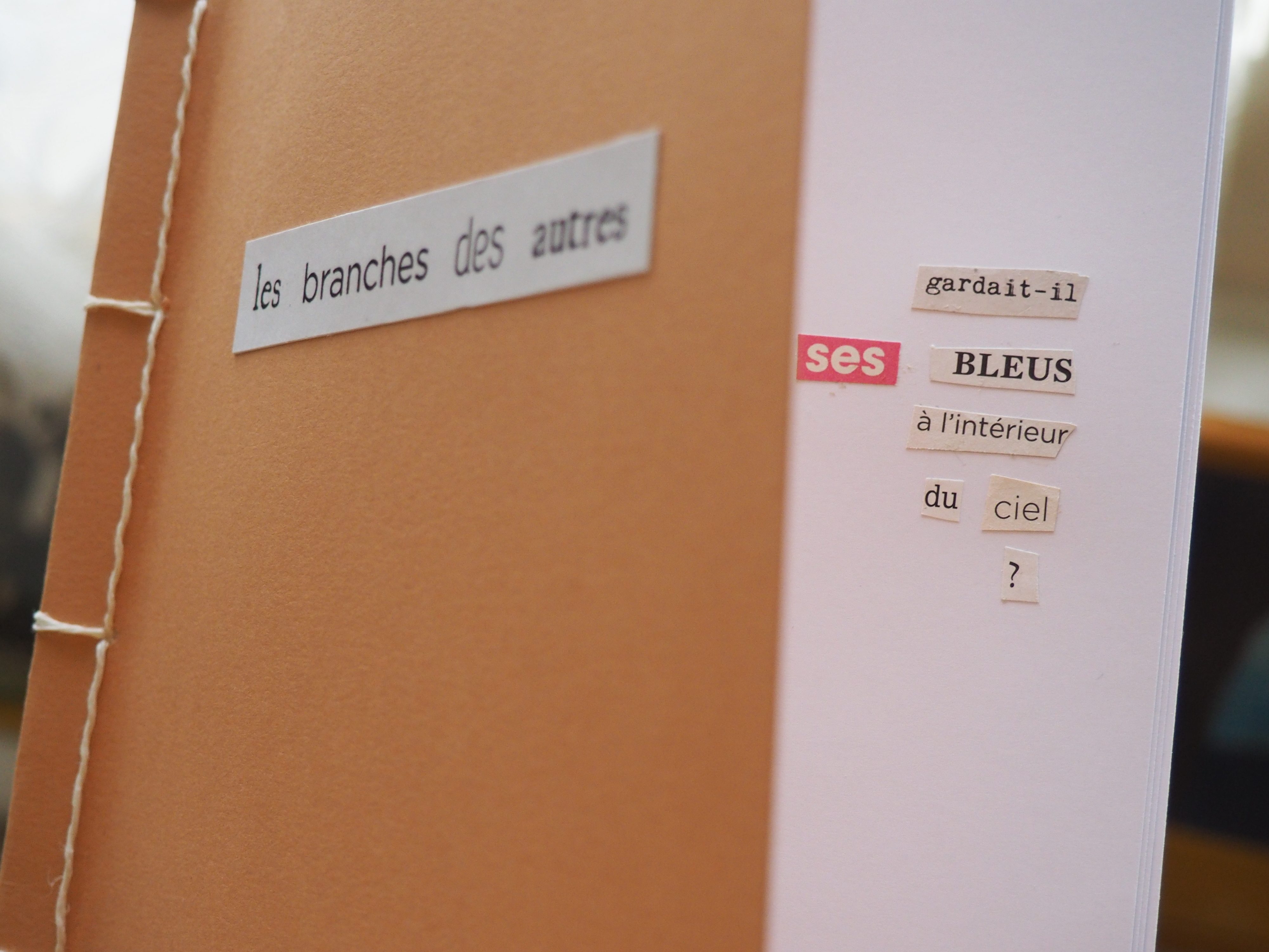 côté micro-édition, les poèmes sont imprimés en couleur dans leur forme originale – donc collée. les livrets sont reliés avec une relire japonaise, sont numérotés et singularisés par l’ajout d’un épigraphe unique sur chaque exemplaire ; chacun contient 10 poèmes. entre 35 et 50 exemplaires sont imprimés à chaque saison.