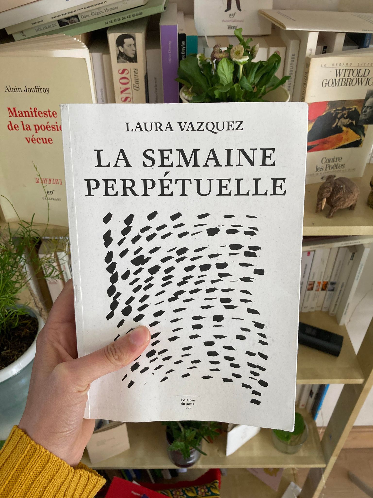 J’ai lu récemment La Semaine perpétuelle. Je l’ai lu et je l’ai aimé. Ce roman m’a guérie de Solénoïde. Il a repris les gouffres qu’avait ouvert le roman de Cărtărescu. Il a poursuivi la même exploration du vide, la même angoisse face à l’insoutenable légèreté de l’être. J’ai toujours eu cette même impression d’être attrapée par les épaules et violemment secouée. Mais différemment. Ici plutôt, en ayant l’impression qu’on me disait : « oui c’est bizarre mais maintenant ça suffit, arrête de chialer ». Je sais pas. Ce roman est allé au-delà du gouffre. Il est passé comme on switcherait sur une prochaine vidéo. Ou sur quelqu’un. Comme si oui, c’est horrible, oui « quand vous pleurerez, il y aura toujours une guêpe pour piquer votre figure », mais c’est comme ça. « On ne trouve jamais la vie » et on aura beau crier à l’aide sur vingt-cinq pages (ça c’est Solénoïde), on ne la trouvera quand même pas.