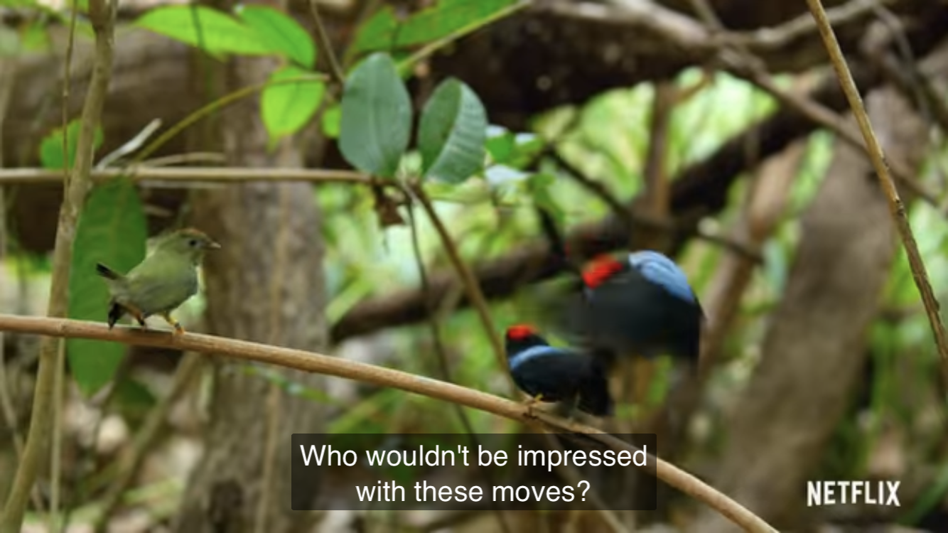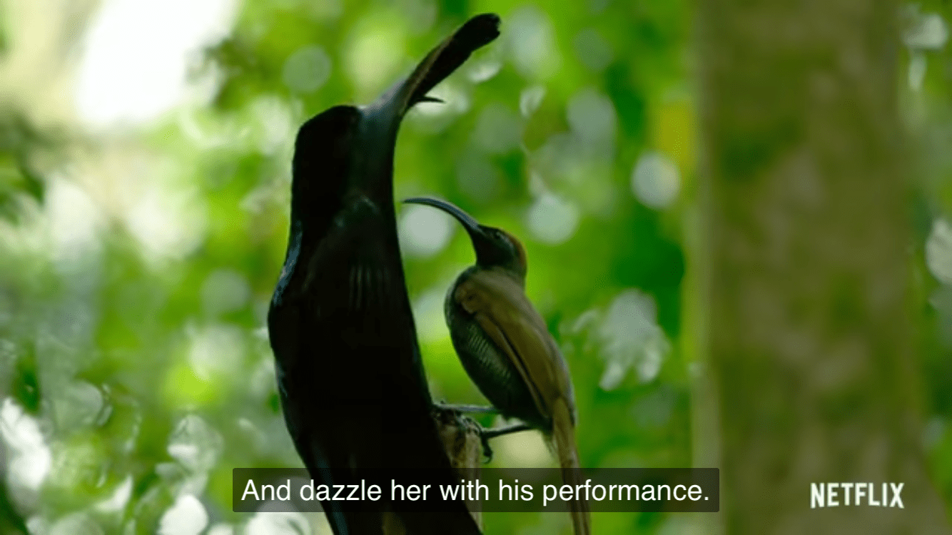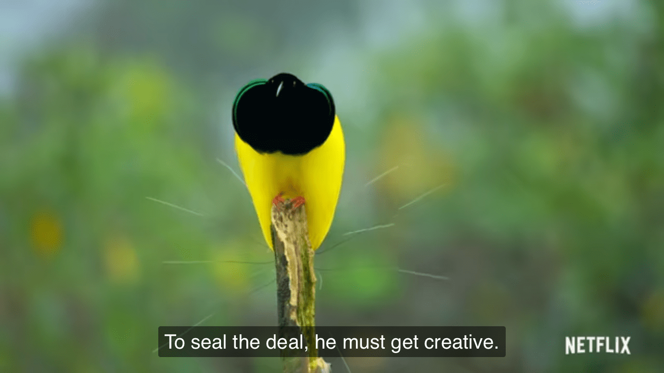 et j’ai continué en disant : « vous, les gars d’ici, vous êtes exactement comme des oiseaux. vous chantez, vous sortez vos plumes, vos arcs, vos parades, mais vous comptez surtout sur votre territoire pour nous appâter. ».