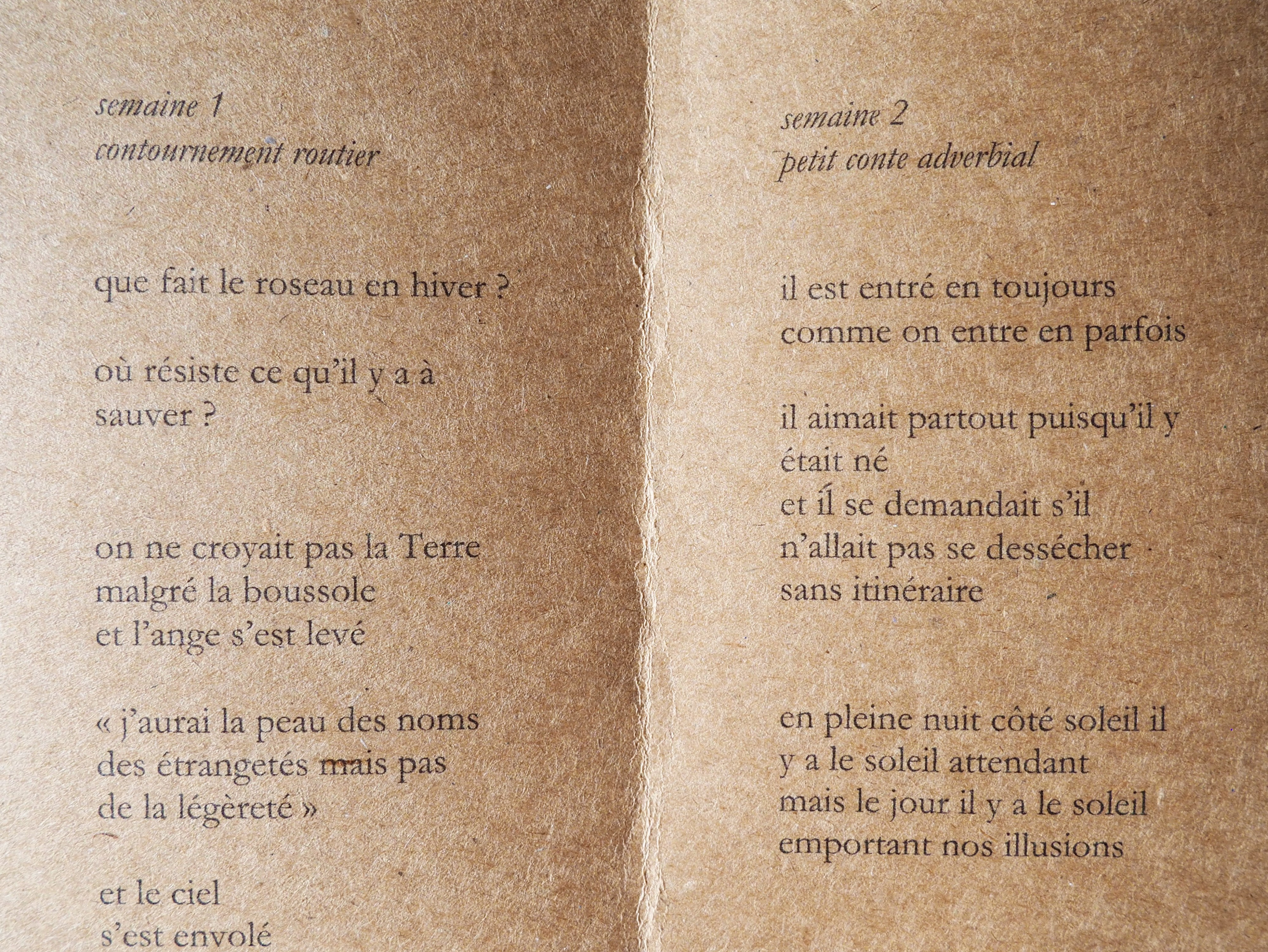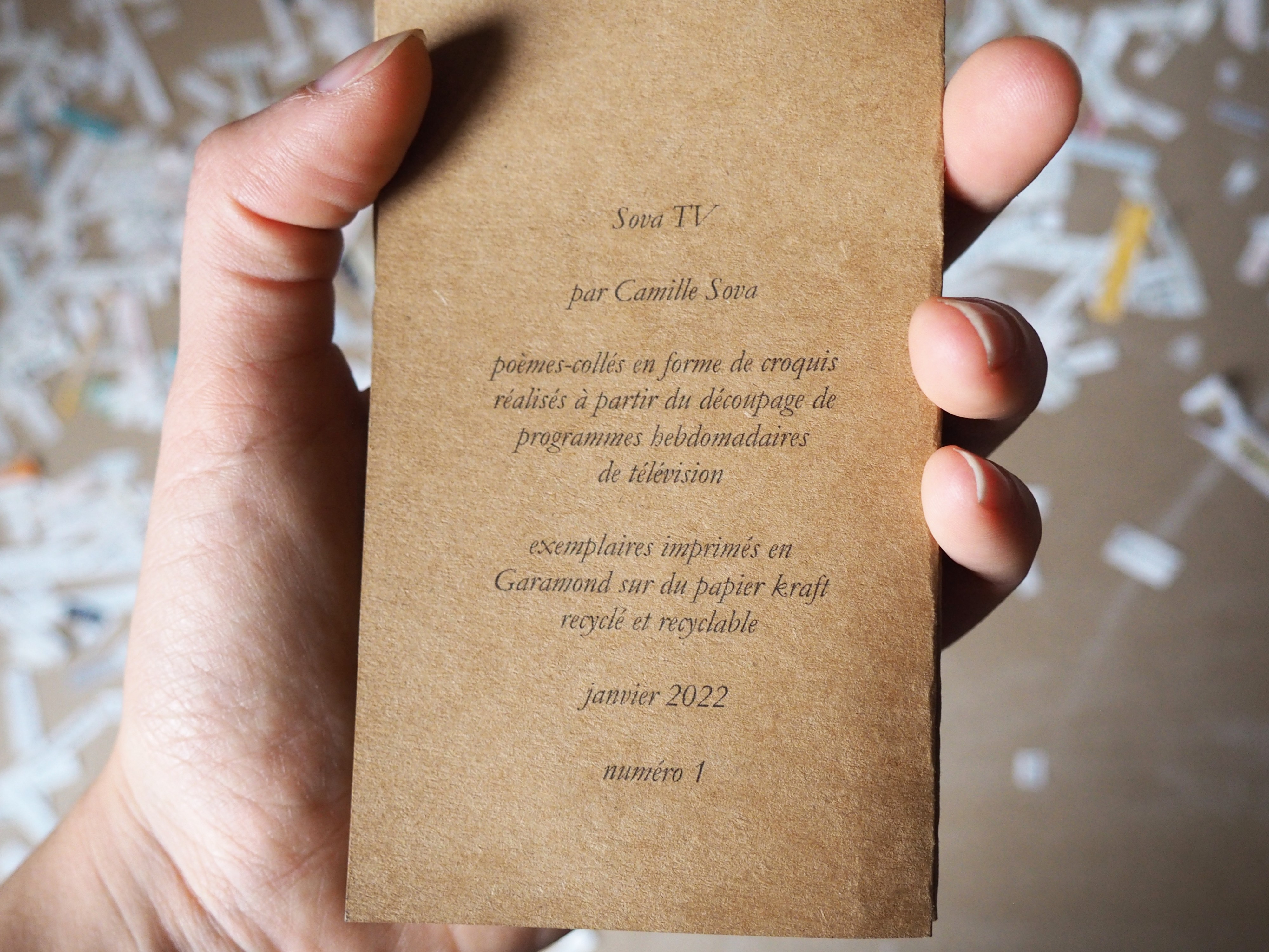 poèmes-collés (puis dactylographiés) en forme de croquis réalisés à partir du découpage de programmes hebdomadaires de télévision