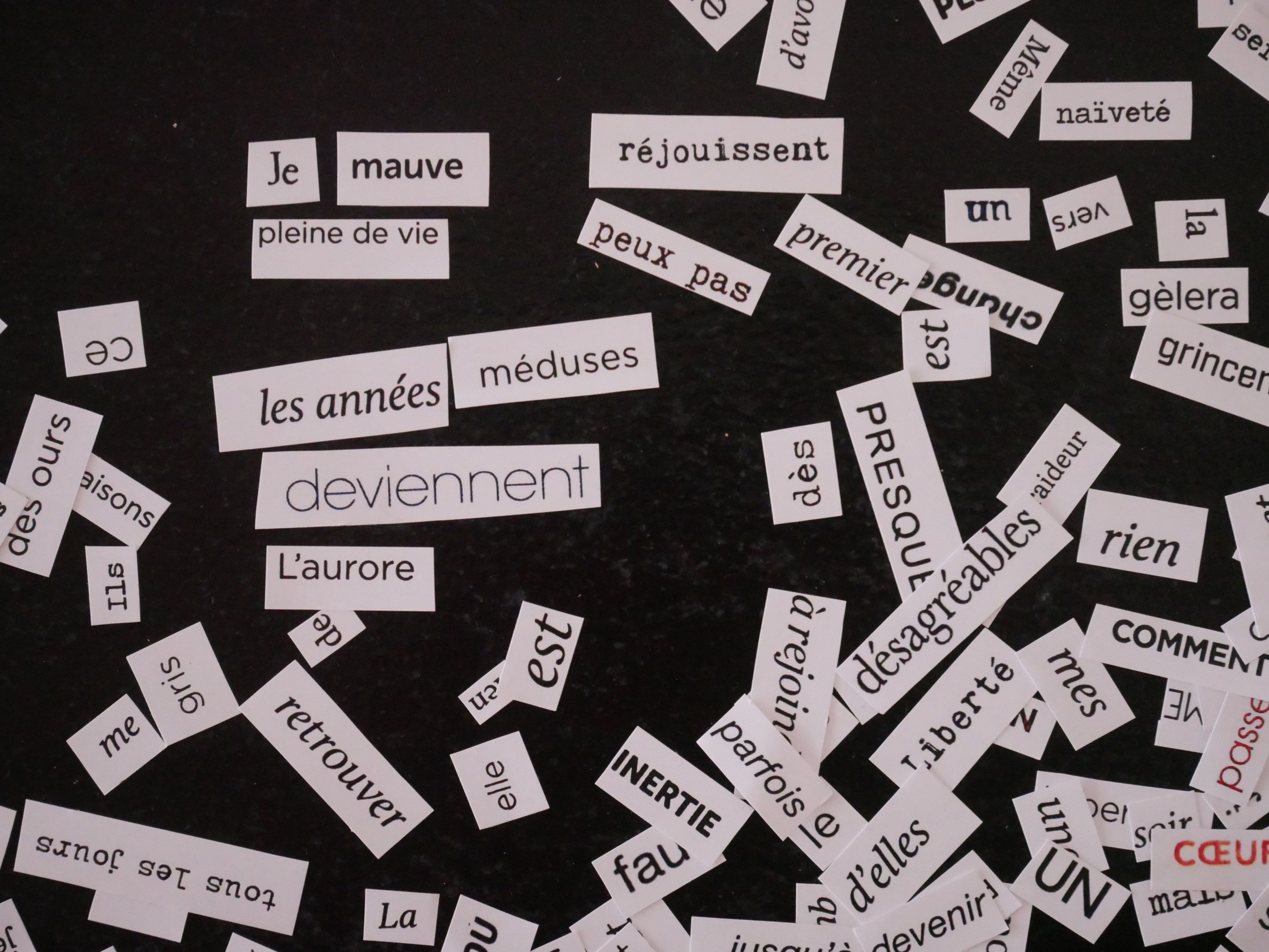 Camille Sova compose des poèmes – le plus souvent réalisés à partir de collages – des chansons, des choses entre les deux, des livres pauvres, plus rarement des vidéo-poèmes et s’adonne depuis peu à des lectures publiques et des presque-spectacles.